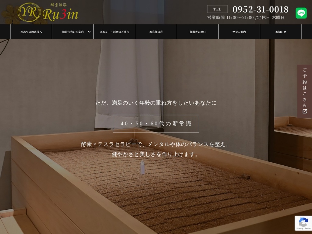 | 酵素温浴ru3in | 酵素温浴とマッサージを組み合わせた独自の施術で、体内から腰痛を改善。温熱効果で筋肉の深部までアプローチ | 60分 6,000円~ | 佐賀県佐賀市鍋島4丁目3−1 医大前ハイツ A103 |